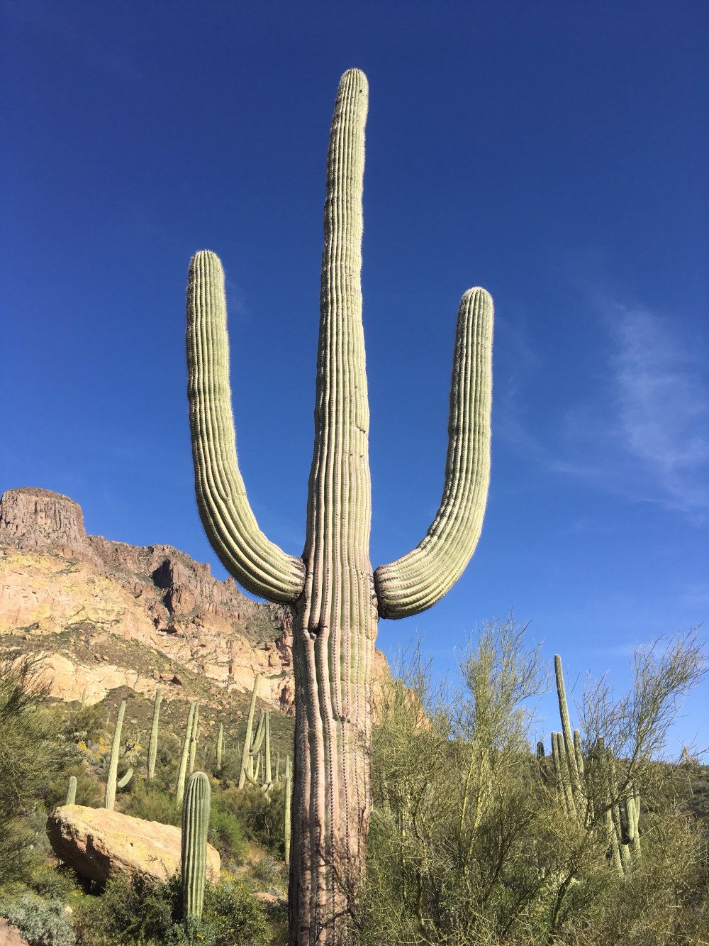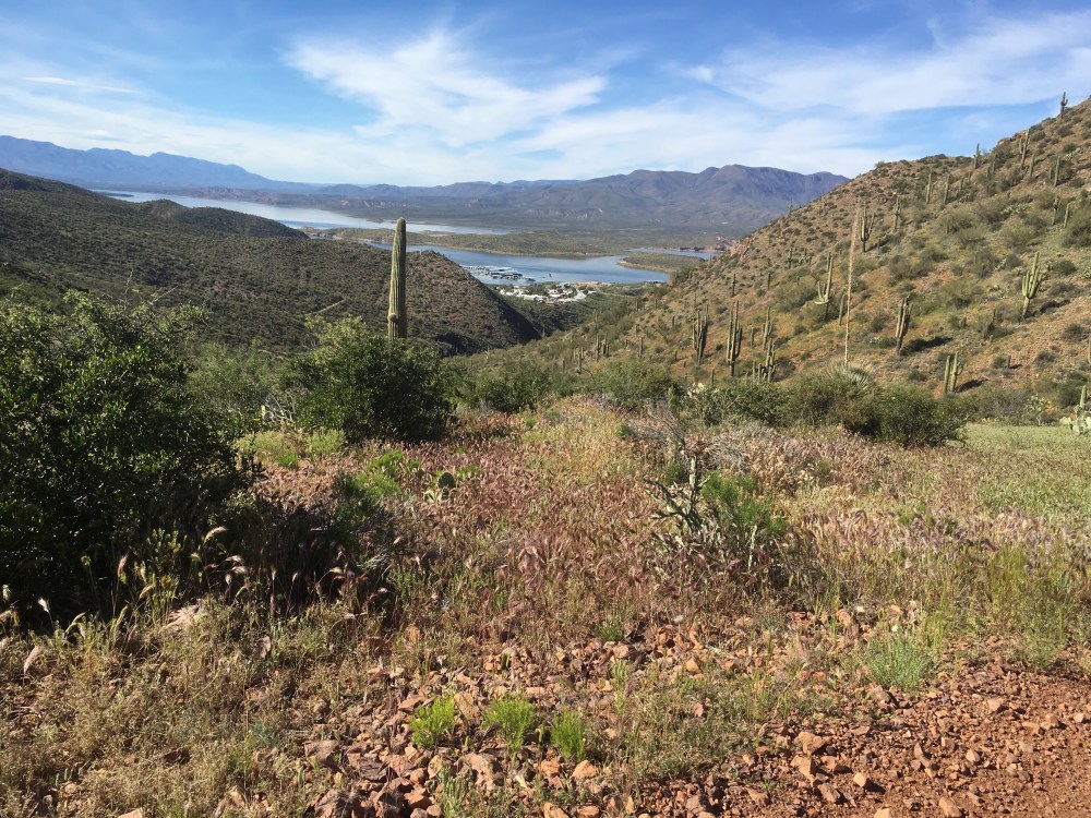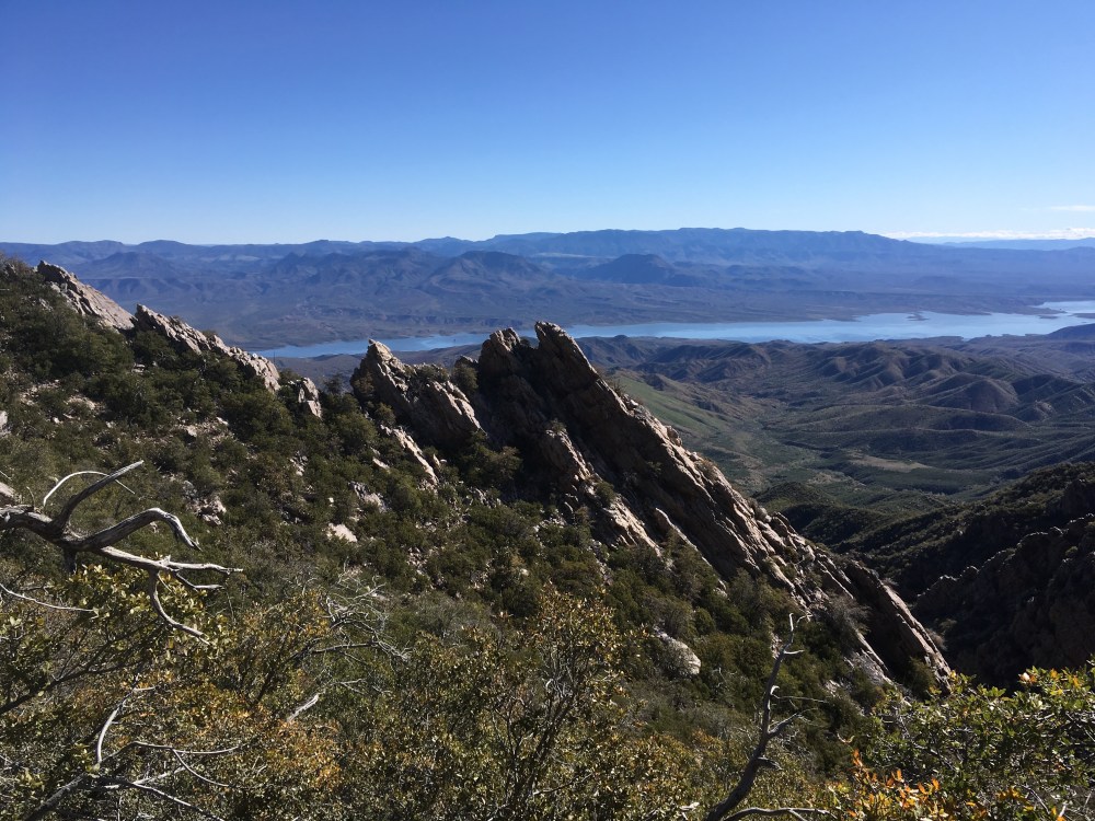 When I was visiting the Roosevelt Lake, it was nearly 90°. After climbing 3000 feet into the Mazatzal mountains, it was lightly snowing – a bit of a cold night last night